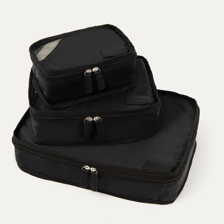 - Travelpro Essentials™ Packing Cubes Set of 3: These durable, lightweight cubes come in three different sizes, allowing you to pack smarter and stay organized.